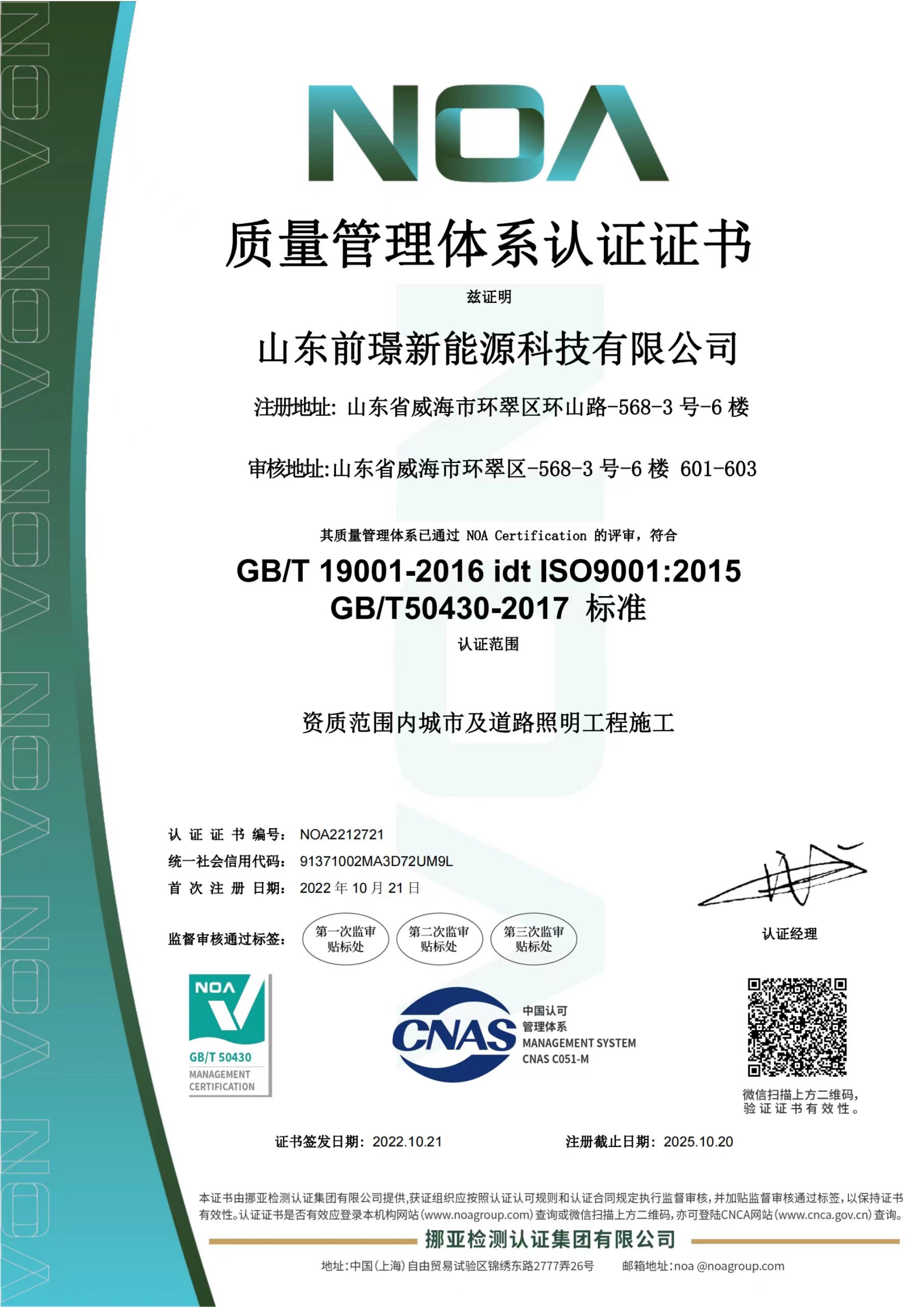 質(zhì)量是企業(yè)的生命線,是企業(yè)的命脈和靈魂,為進(jìn)一步規(guī)范公司業(yè)務(wù)流程、有效控制風(fēng)險(xiǎn),形成標(biāo)準(zhǔn)化經(jīng)營(yíng)、規(guī)范化管理的模式,山東前璟新能源科技有限公司于2022年起開始推行ISO45001、ISO9001、ISO14001三大體系認(rèn)證工作,并在同年10月份首次通過ISO45001、ISO9001、ISO14001三大體系認(rèn)證。2022年中旬公司成立專門小組,全面負(fù)責(zé)貫標(biāo)工作并將其作為2022年重點(diǎn)工作之一。